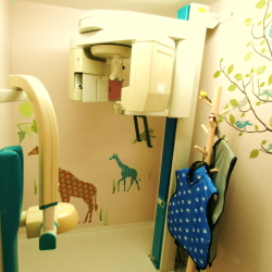 また、お子様が怖くないように壁には動物や木、小鳥が